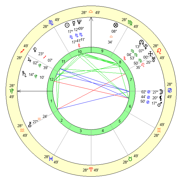 | Sun | 17 Scorpio 18 | 17 Scorpio 33 | 23 Capricorn 17 |