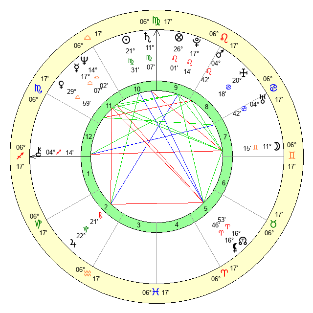 | Sun | 21 Virgo 32 | 22 Virgo 8 | 7 Sagittarius 9 |