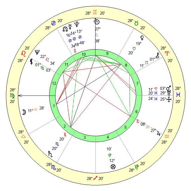 | Moon | 11 Libra 20 | 10 Aries 21 | 8 Gemini 34 |