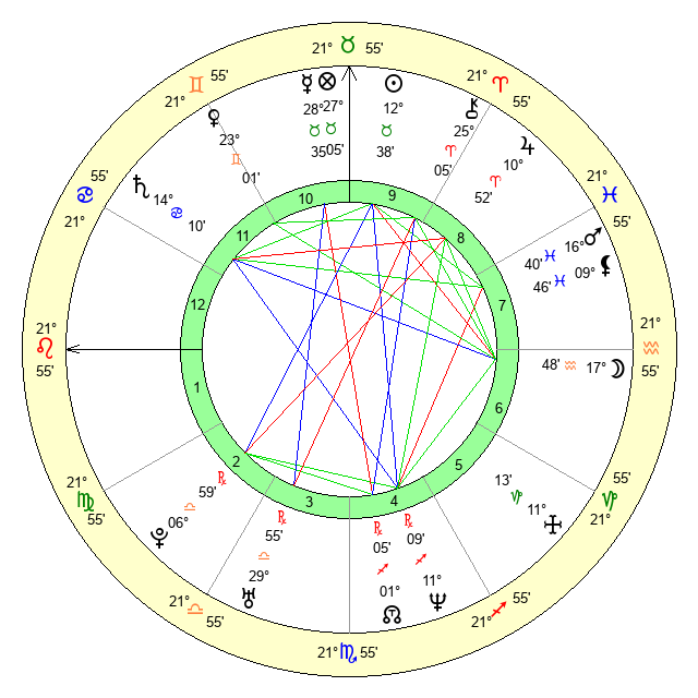 | Moon | 17 Aquarius 44 | 3 Leo 9 | 18 Sagittarius 26 |
