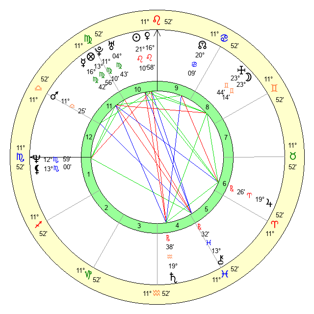 | Mercury | 16 Virgo 43 | 4 Leo 55 | 7 Libra 50 |