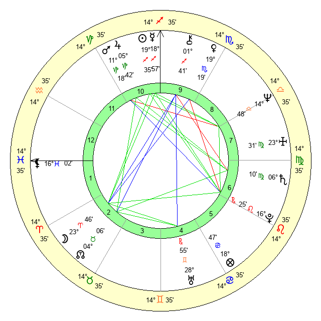 | Saturn | 6 Virgo 40 | 25 Pisces 13 | 2 Virgo 56 |