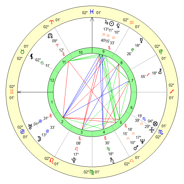 | Venus | 10 Aquarius 34 | 27 Pisces 13 | 9 Pisces 52 |