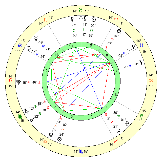 | Neptune | 15 Libra 31 | 0 Aries 51 | 14 Libra 36 |