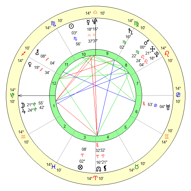 | Saturn | 16 Virgo 30 | 25 Pisces 54 | 19 Virgo 49 |