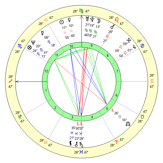 | Moon | 13 Virgo 21 | 21 Gemini 40 | 15 Scorpio 49 |