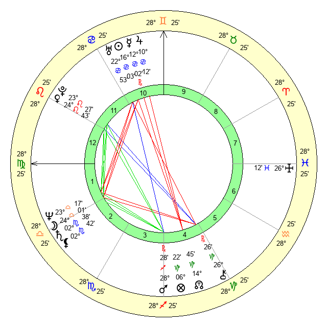 | Moon | 24 Libra 5 | 22 Sagittarius 48 | 2 Gemini 15 |
