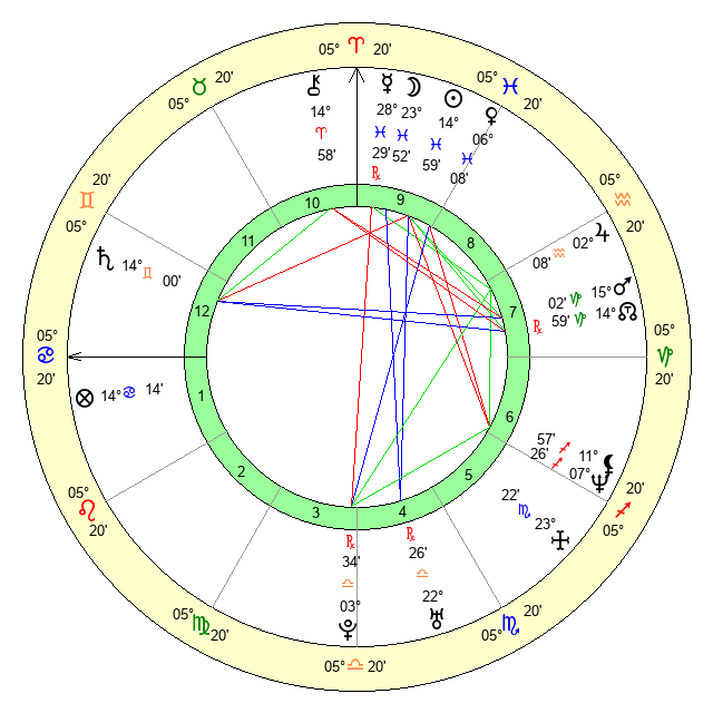 | Sun | 14 Pisces 59 | 15 Pisces 22 | 6 Taurus 18 |