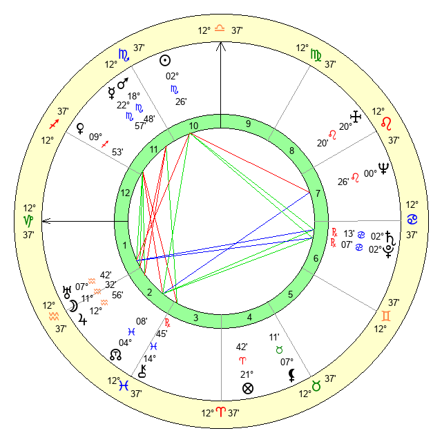| Moon | 11 Aquarius 36 | 0 Virgo 40 | 17 Aquarius 57 |