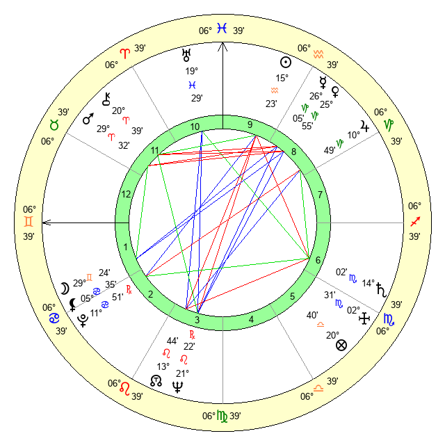 | Saturn | 14 Scorpio 35 | 17 Pisces 46 | 10 Scorpio 35 |