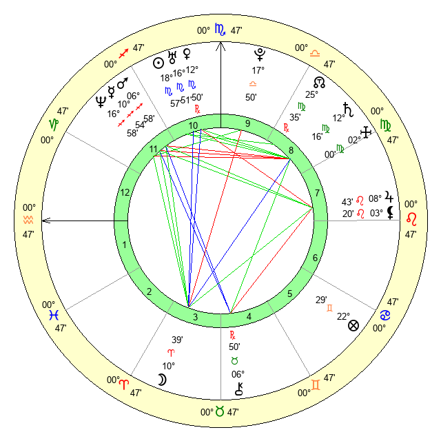 | Saturn | 12 Virgo 39 | 25 Pisces 17 | 14 Virgo 19 |