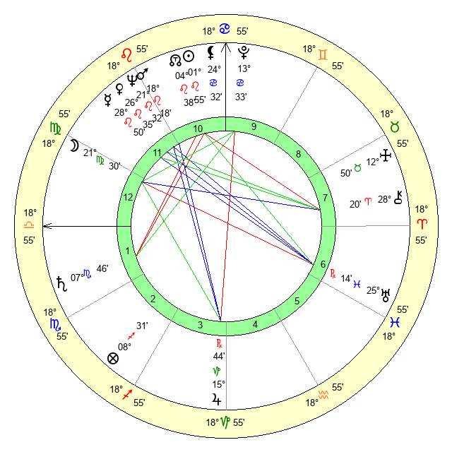 | Moon | 21 Virgo 32 | 10 Leo 29 | 0 Gemini 7 |