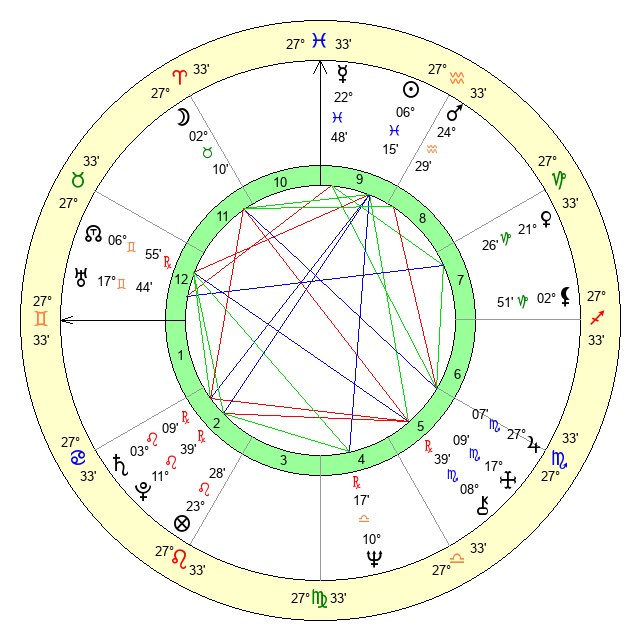 | Jupiter | 27 Scorpio 0 | 12 Gemini 1 | 22 Scorpio 30 |