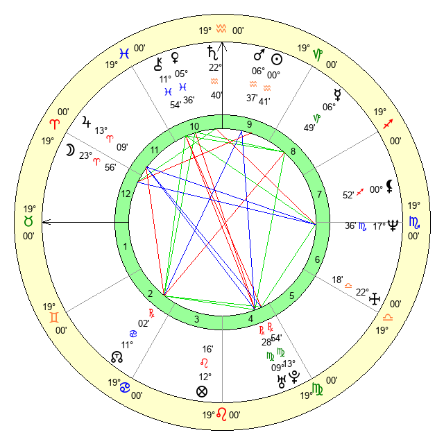 | Pluto | 13 Virgo 54 | 1 Aquarius 43 | 12 Virgo 26 |