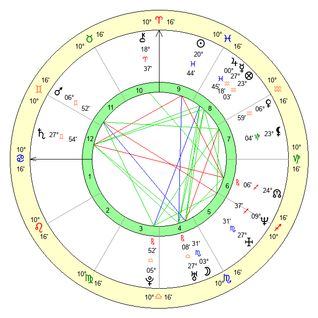 | Moon | 3 Scorpio 30 | 22 Leo 9 | 12 Virgo 20 |