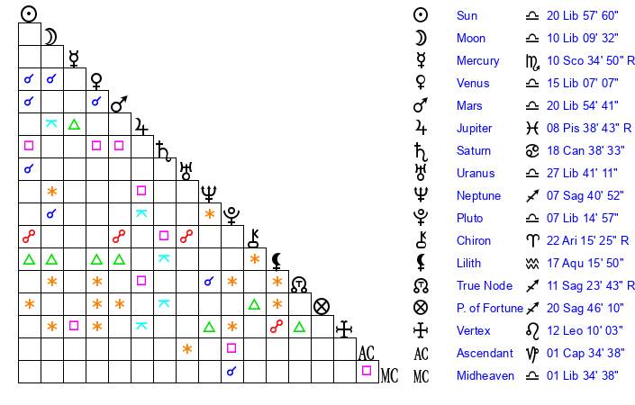 | Uranus | 27 Libra 44 | 0 Gemini 53 | 0 Scorpio 46 |