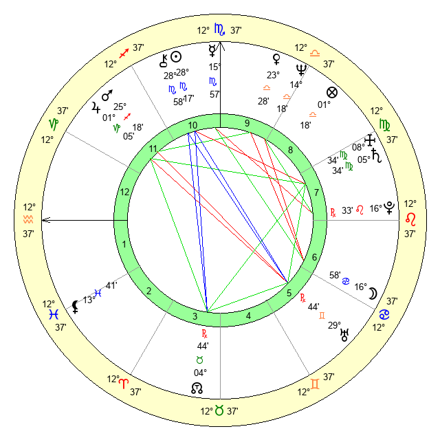 | Saturn | 6 Virgo 3 | 25 Pisces 6 | 4 Virgo 36 |