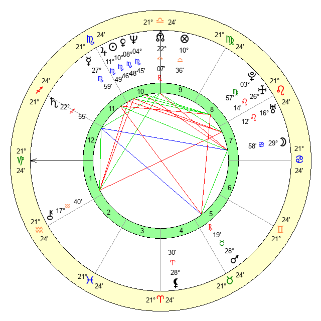 | Neptune | 4 Scorpio 45 | 29 Pisces 43 | 6 Scorpio 43 |