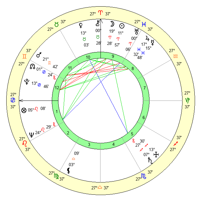 | Moon | 19 Aries 30 | 12 Gemini 27 | 15 Scorpio 53 |