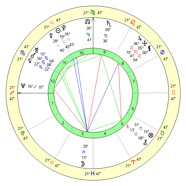 | Saturn | 9 Virgo 58 | 26 Pisces 45 | 13 Virgo 43 |