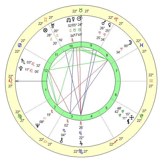 | Mars | 26 Aries 27 | 13 Leo 0 | 22 Gemini 22 |