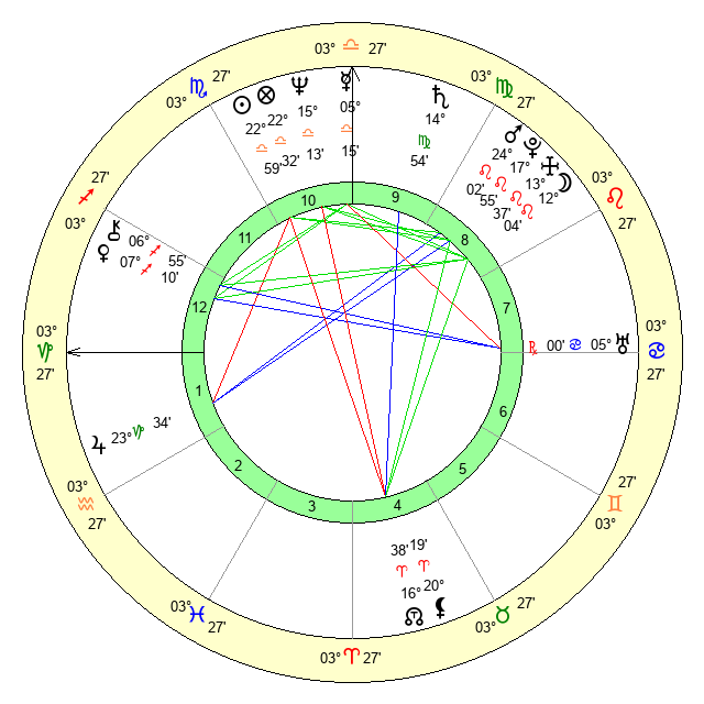 | Sun | 23 Libra 0 | 23 Libra 35 | 9 Capricorn 42 |
