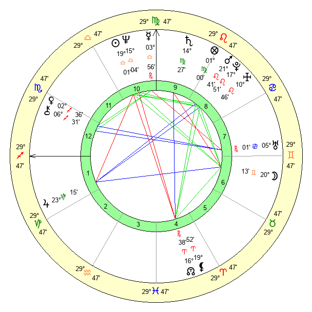 | Saturn | 14 Virgo 55 | 26 Pisces 48 | 19 Virgo 57 |