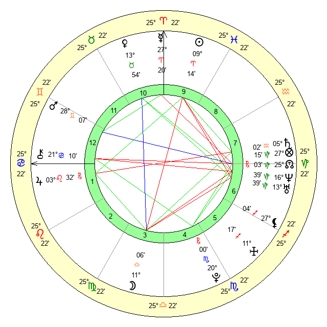 | Moon | 11 Libra 3 | 24 Aries 8 | 3 Capricorn 22 |