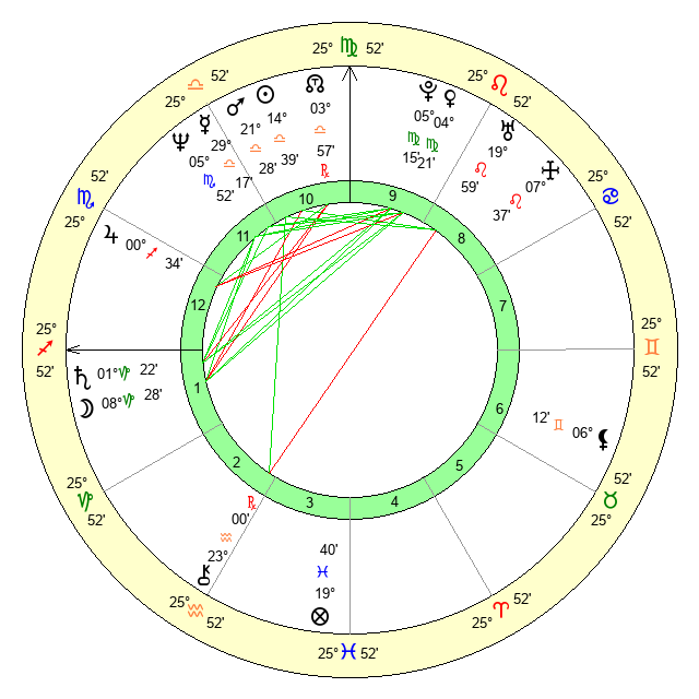 | Venus | 4 Virgo 21 | 23 Virgo 35 | 6 Scorpio 53 |