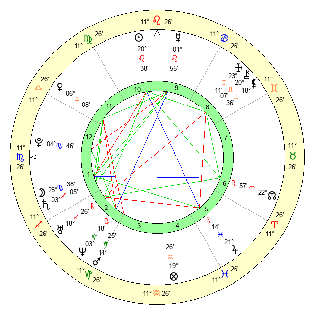 | Venus | 6 Libra 8 | 15 Cancer 48 | 11 Scorpio 10 |