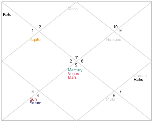 | Rahu | 7 Scorpio 21 | 19 Pisces 38 | 4 Scorpio 46 |
