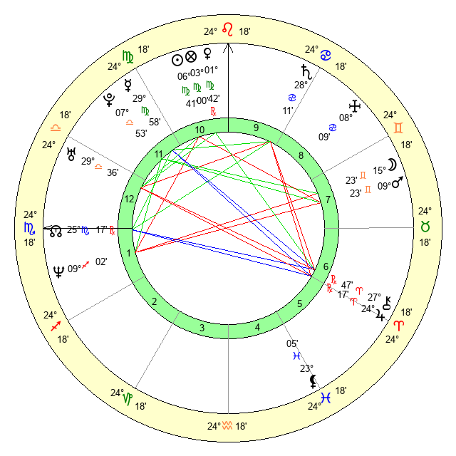 | Venus | 1 Virgo 41 | 6 Leo 0 | 10 Virgo 34 |