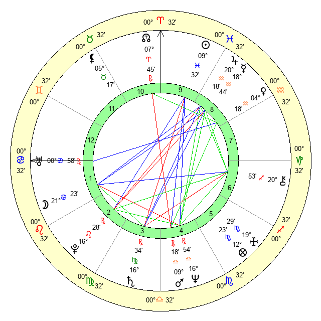 | Moon | 21 Cancer 18 | 19 Pisces 32 | 27 Aries 56 |