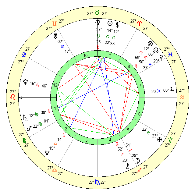 | Saturn | 13 Virgo 12 | 28 Pisces 12 | 16 Virgo 26 |