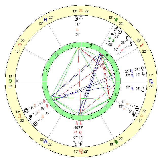 | Venus | 23 Scorpio 32 | 22 Aquarius 50 | 11 Aquarius 54 |