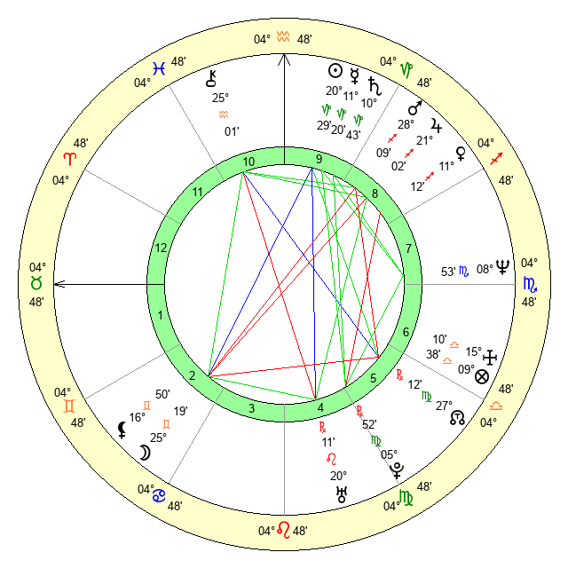 | Pluto | 5 Virgo 52 | 1 Aquarius 24 | 4 Virgo 21 |