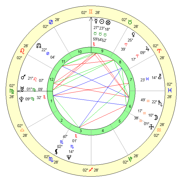 | Pluto | 9 Virgo 33 | 3 Aquarius 47 | 10 Virgo 18 |