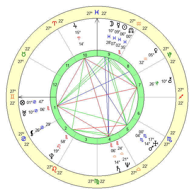 | Mercury | 9 Pisces 7 | 20 Pisces 38 | 22 Aries 7 |