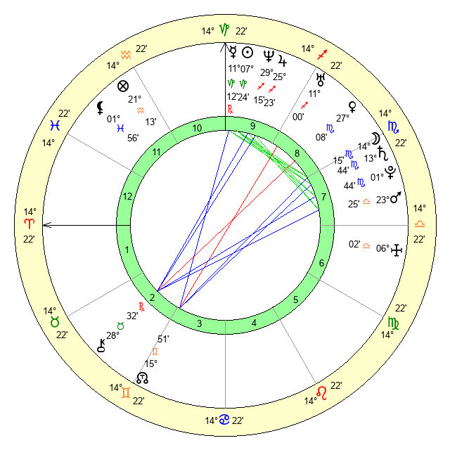 | Moon | 14 Scorpio 12 | 23 Sagittarius 43 | 2 Taurus 28 |