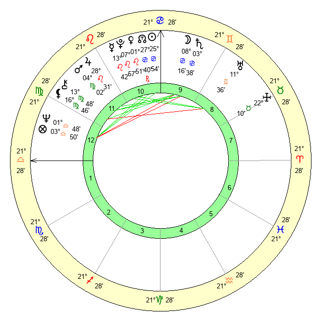 | Sun | 25 Cancer 54 | 26 Cancer 19 | 14 Libra 18 |