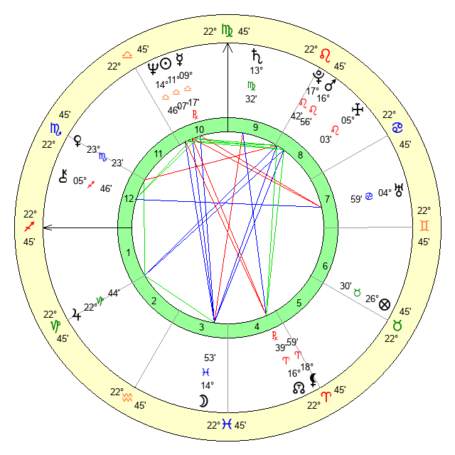 | Saturn | 14 Virgo 0 | 27 Pisces 22 | 19 Virgo 50 |