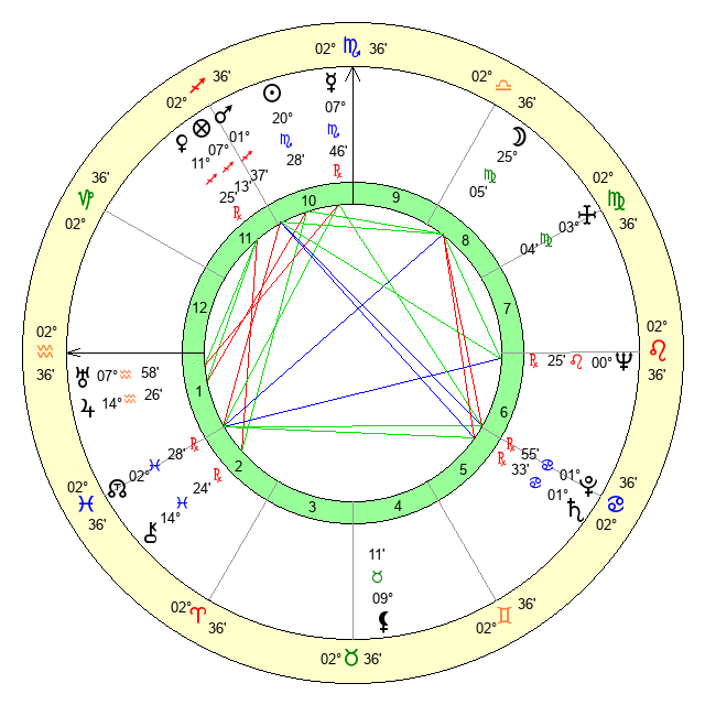 | Moon | 25 Virgo 10 | 21 Aries 25 | 7 Libra 35 |