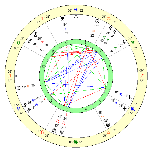 | Moon | 17 Gemini 36 | 23 Aries 41 | 16 Aquarius 26 |