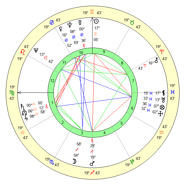 | Sun | 17 Gemini 6 | 18 Gemini 9 | 25 Virgo 57 |