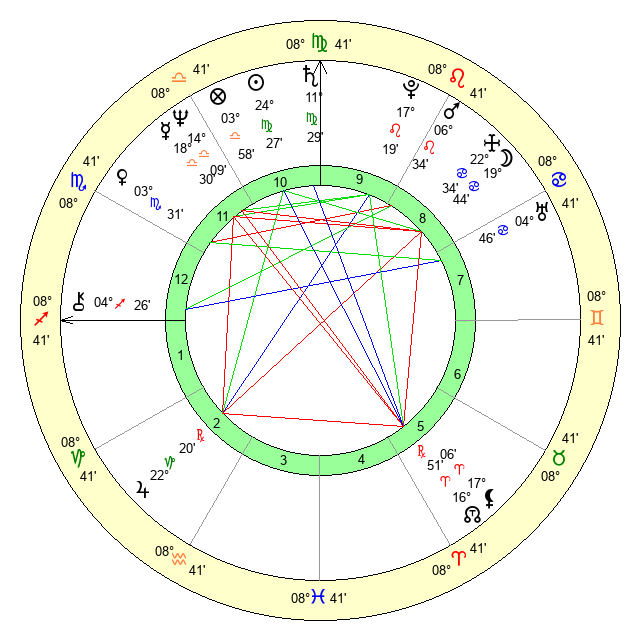 | Saturn | 11 Virgo 57 | 28 Pisces 40 | 19 Virgo 14 |