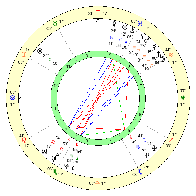| Mars | 23 Aquarius 14 | 17 Cancer 22 | 12 Aries 21 |