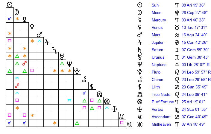 Moon | 26 Capricorn 33 | 23 Aries 30 | 28 Capricorn 56 |