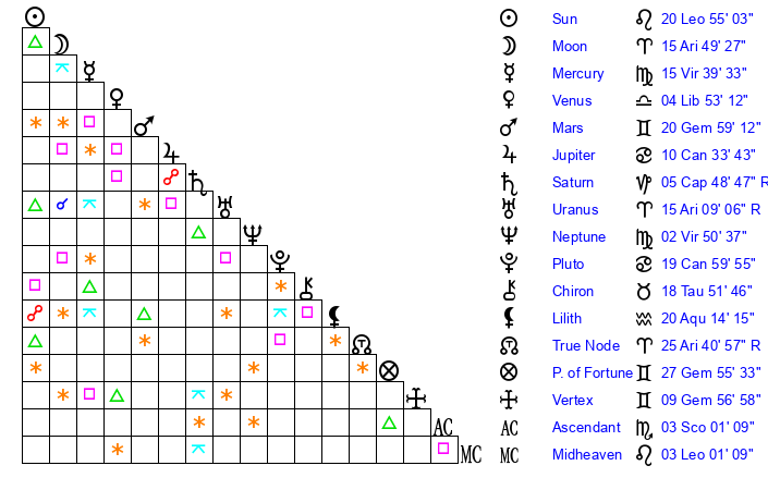 Moon | 15 Aries 48 | 28 Aries 28 | 16 Libra 12 |