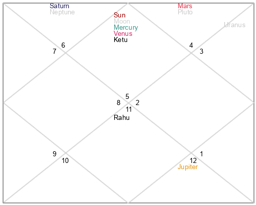 | Ketu | 9 Virgo 49 | 18 Virgo 32 | 5 Virgo 54 |