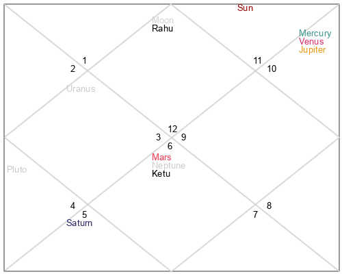 | Moon | 13 Aries 59 | 1 Sagittarius 51 | 17 Capricorn 46 |